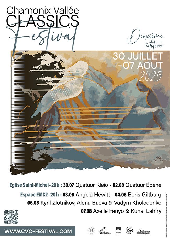 Suite au succès de la première édition du festival Chamonix Vallée Classics 2024, j’ai le grand plaisir de vous présenter le programme pour la deuxième édition, du 30 juillet au 7 août 2025.