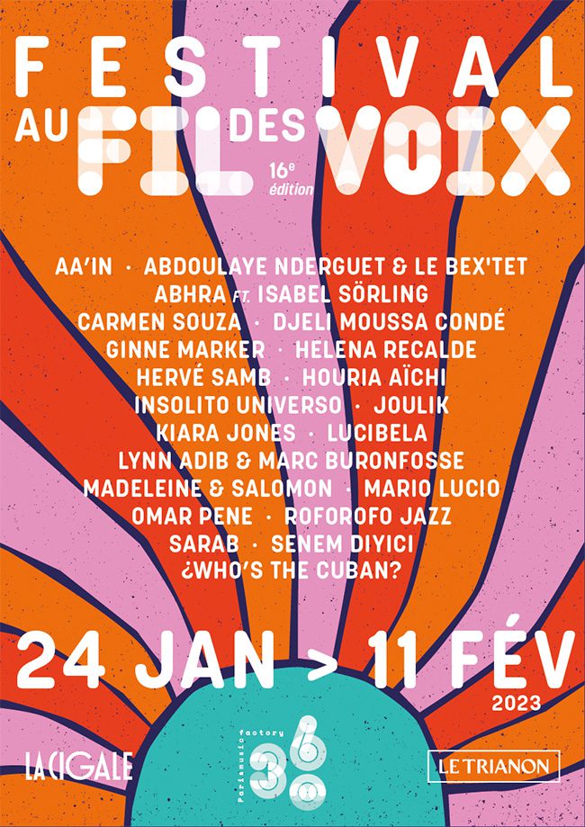 Pour ponctuer ce cru 2023, deux géographies musicales, différemment poétiques mais également fascinantes seront mise à l’honneur. La scène cap-verdienne, tout d’abord, au travers une soirée d’ouverture exceptionnelle qui réunira Mario Lucio, Carmen Souza et Lucibela sur la scène de La Cigale le 24 janvier. Après 15 soirées riches en découvertes au 360 Paris Music Factory, c’est avec la foisonnante scène ouest-africaine et à la faveur du come-back de l’illustre Omar Pene, accompagné d’artistes qui viendront également présenter leurs nouveaux albums (Djéli Moussa Condé et Hervé Samb), que nous fêterons au Trianon la clôture d’une édition haute en couleurs et en émotions.